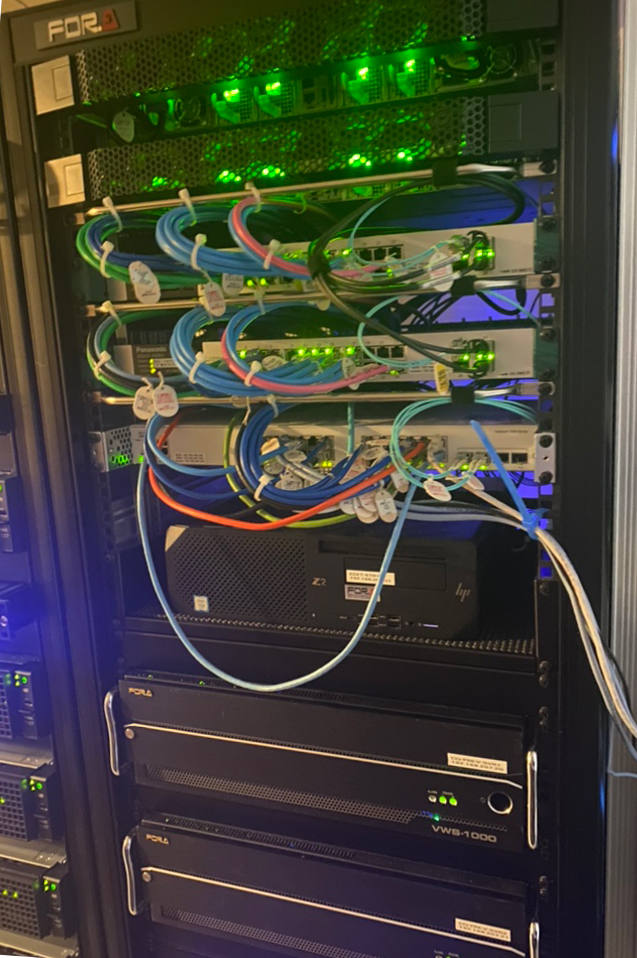 システムの特徴としては、SMPTE ST 2110 + NMOSによる制御を採用しているところです。 SMPTE ST 2110は、音声の伝送路帯域を縮小できる事に加え、簡単に各出力部分の映像音声を組み合わせることが出来るため、作業効率が向上しています。また、NMOS制御を採用することにより、他メーカー間であっても新たにI/Fを構築する必要がなく迅速にシステムを構築することできました。 朋栄を採択した理由はいくつかありますが、CG/ファイルベース送出部分(VWS-1000-IP25G/MBP-1000VS-IP25G-P6S6)がSMPTE ST 2110 + NMOSに対応していた点が大きいです。 また、更新仕様への対応力が高かったことや、開発・製造環境が国内にあることもポイントの一つです。