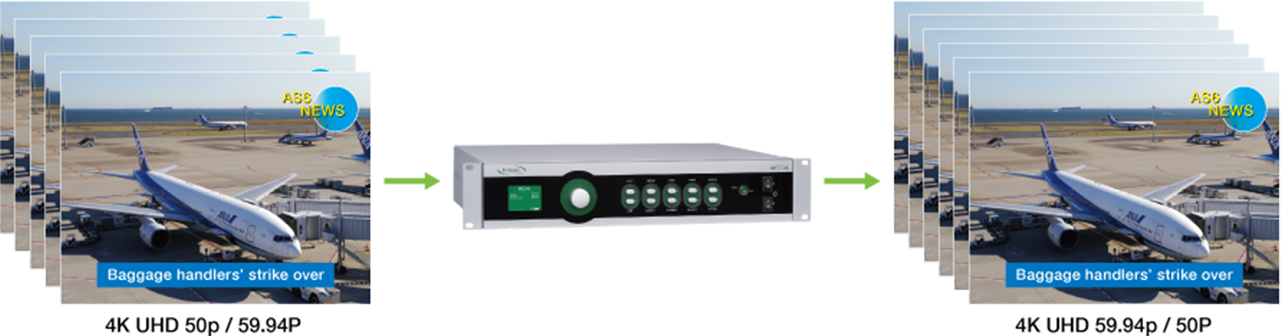 UHD/3G/HDにおける23.98〜60の各種信号を異なるフレームレートに変換でき、入力された映像フォーマットは自動認識可能。スポーツやコンサート、ニュース速報など、さまざまなフレームレートで国際的に配信されるようなライブ制作に最適。