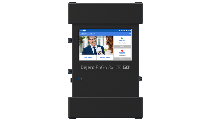 EnGo 3xは、高度なRFおよびアンテナ設計と最大7つのネットワーク接続(5G/4G/LTE/Wi-Fi接続/イーサネット接続/ポータブル衛星接続)をブレンド可能なDejero独自技術Smart Blending Technologyの組み合わせにより、困難な帯域幅条件でも、放送品質の画質を低遅延で確実に伝送します。携帯電話ネットワーク上で最短0.5秒という短いglass-to-glass遅延を実現。どこからでもライブビデオを伝送でき、移動しながらのライブ中継も可能です。