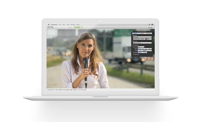 NewsBookは、小型カメラとビデオキャプチャーデバイス、ノートPCなど、必要最低限の機材を持って単独で飛び回るモバイルジャーナリストや国際特派員、現地レポーター向けにデザインされています。遠隔地からのライブイベント中継にも最適です。