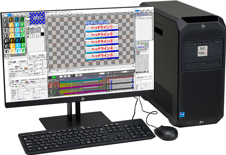 単体で作画から4K 送出まで、通常のHDテロップとまったく同じ操作性で運用可能な、スタンドアローン型のワークステーションモデル。