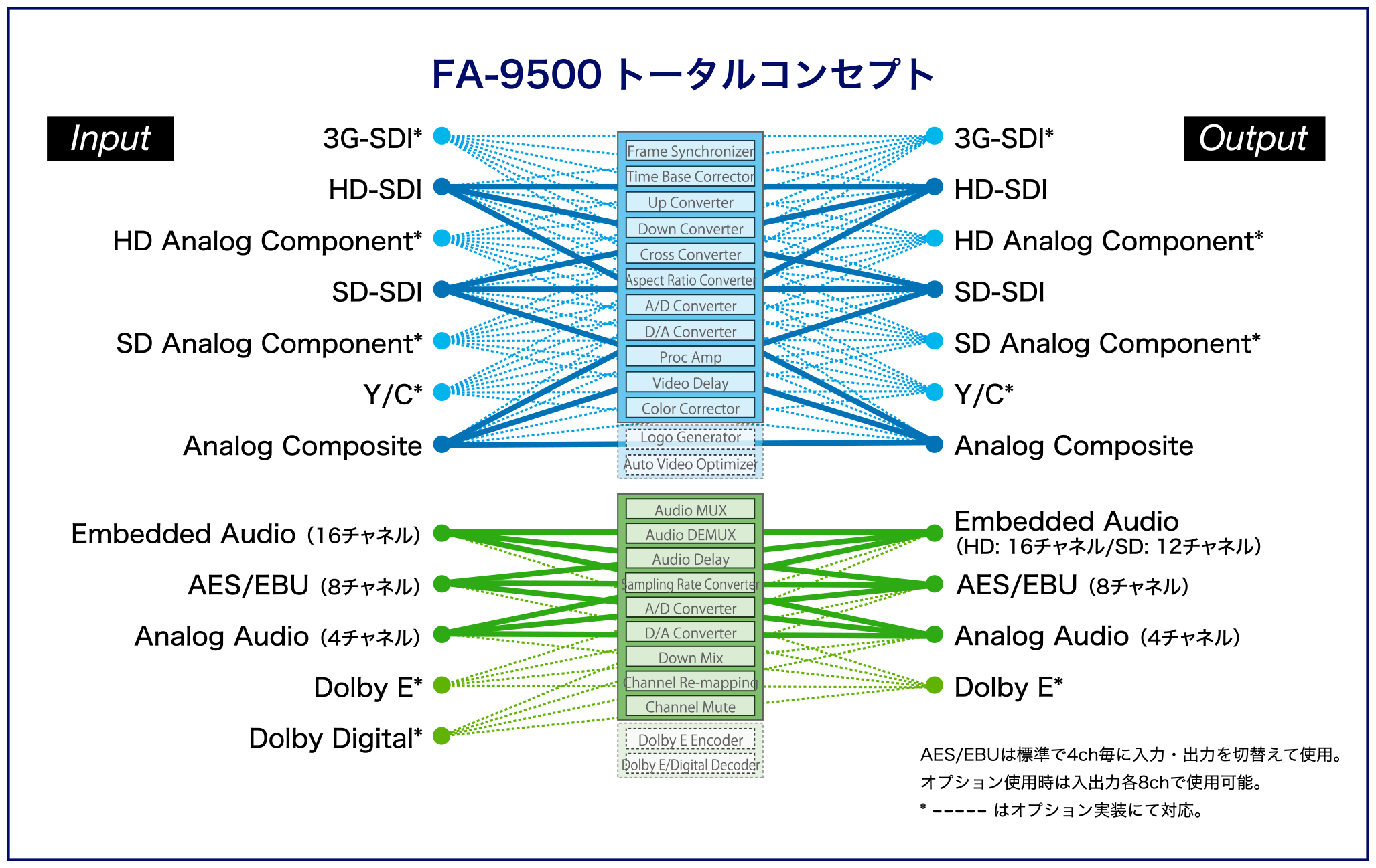 FA-9500は映像制作に必要な各種機能を搭載したマルチパーパスシグナルプロセッサです。