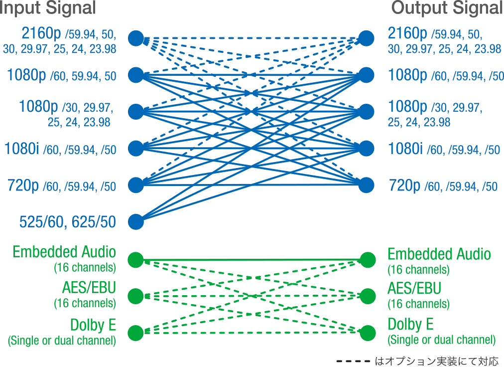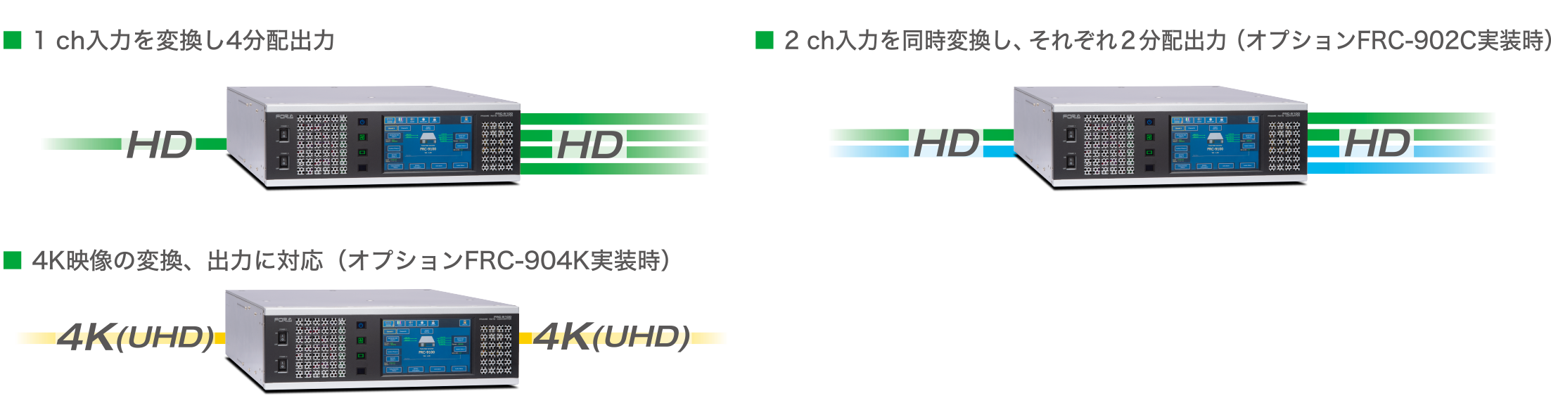- 4KとHD間のダウン/アップ/クロス変換・フレームレート変換をサポート