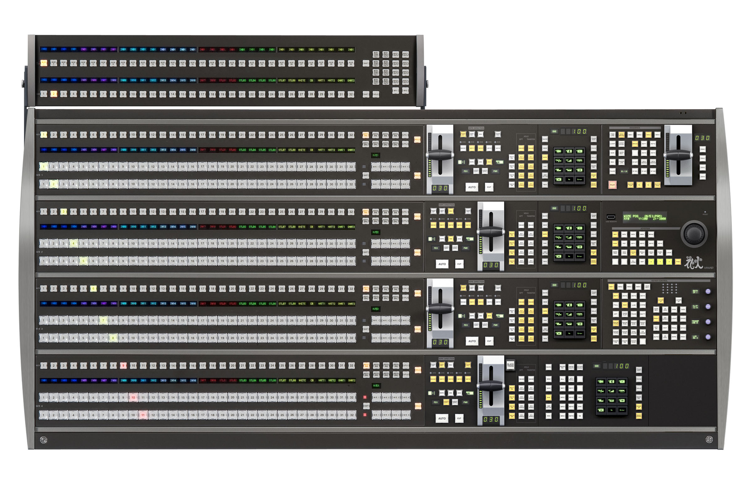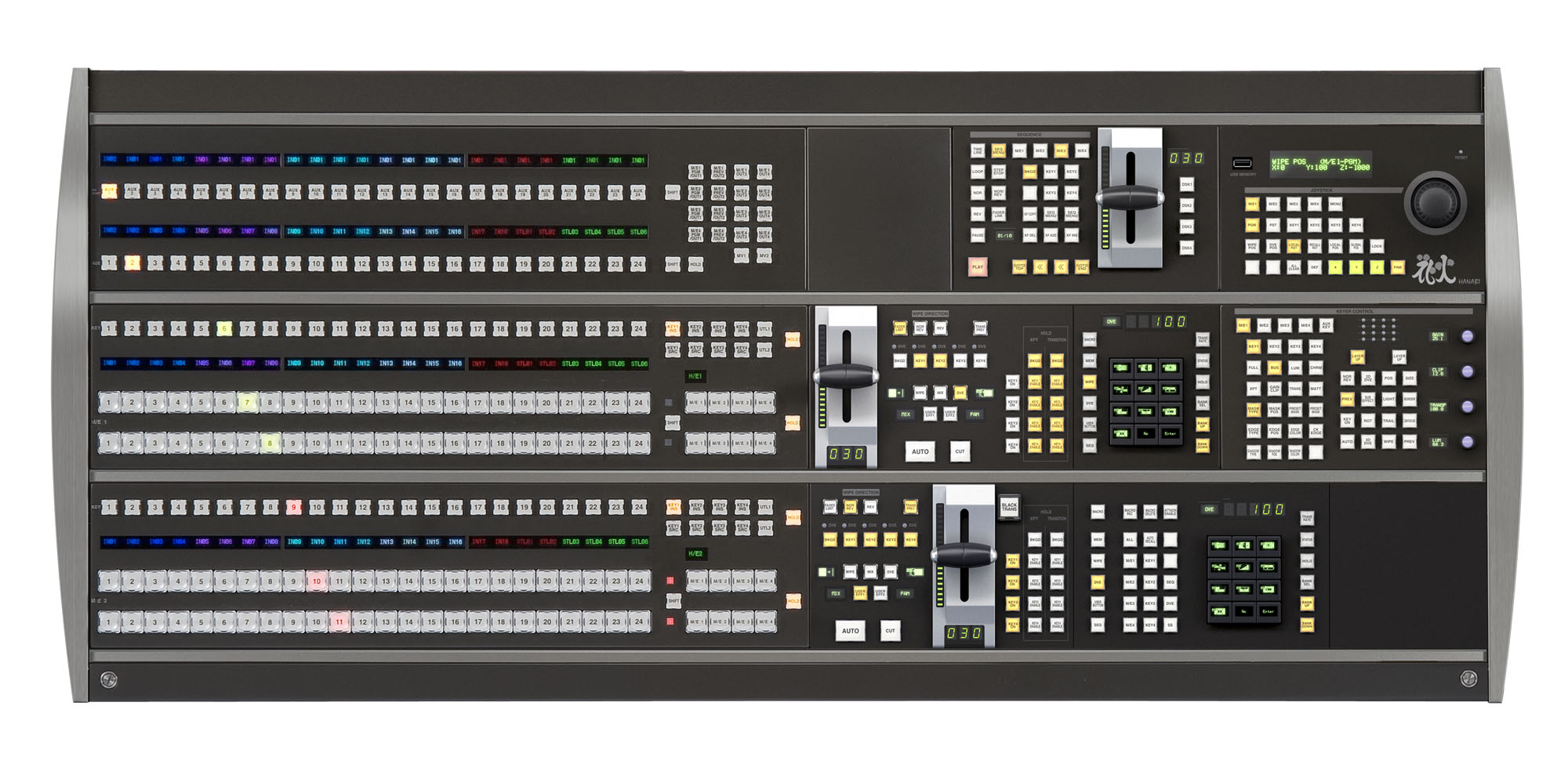 HVS-5000シリーズには2M/E版のHVS-5300A、3M/E版のHVS-5300、4M/E版のHVS-5400の3種類をラインナップ。コントロールパネルは現在のHANABIシリーズの操作系を継承したオペレーションパネルを用意。システム規模や使用用途に応じて様々な組合せのスイッチャシステムを構築することができます。