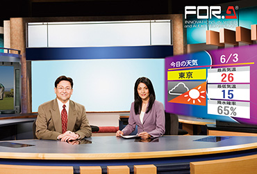 FOR-Aバーチャルシステムとの連動を実現するためのソフトウェア。複数のカメラと少数のCG合成プロセッサーで構成されるコンパクトなバーチャルスタジオシステムの構築が可能です。