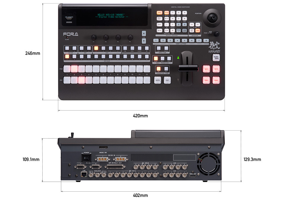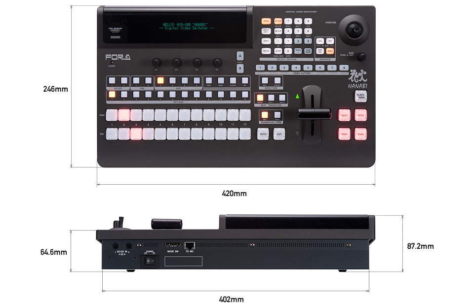 HVS-100/110の操作環境のみで、DSK-400をHVS-100/110の外付けキーヤーとしてオペレーションできるようになり、コンパクトなシステムが構築できるようになりました。