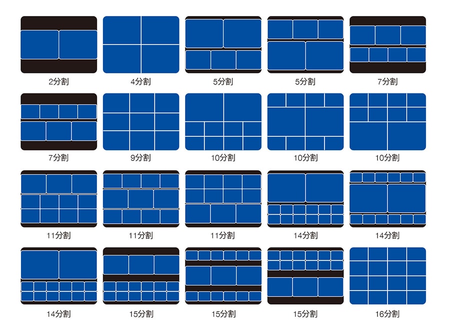 - マルチビューワーの分割パターンを8種類から20種類へ大幅に強化