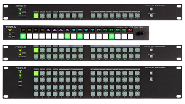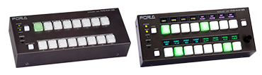 16、32、64ボタンタイプのAUXバス制御ボックス。16、32ボタンは1RUラックサイズ、64ボタンは2RUラックサイズで、Ethernet接続により最大10台まで接続が可能です。HVS-AUX16Cは表示器付き。各ボタンにはAUXのソース確認だけでなく、各種機能のアサインも可能なため、運用の幅が大きく広がります。