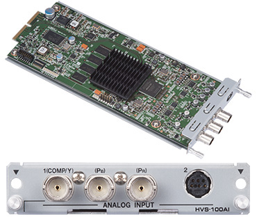 HVS-100では、必要な入出力形式を必要な分だけ追加することが可能です。3基の入出力拡張スロットを装備し、HD/SD-SDIだけでなく、アナログコンポーネント、アナログコンポジット、HDMI、RGBなどの入出力拡張カードを実装することができます。