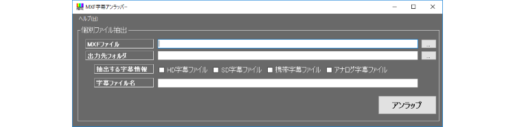 - 字幕が重畳されたMXFファイルから字幕情報を抽出し字幕ファイルを出力。
