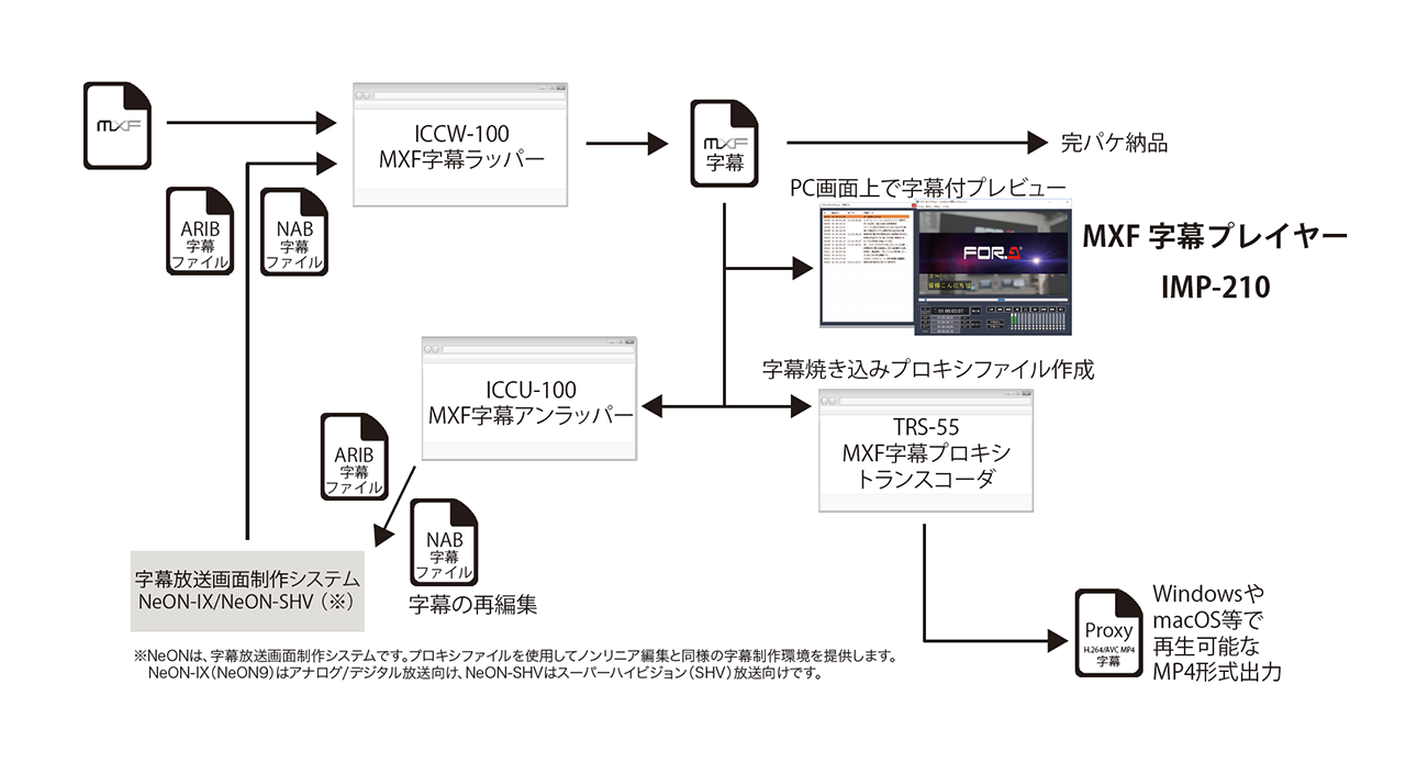 - 字幕が重畳されたMXFファイルを、Windows画面上で字幕付き再生。