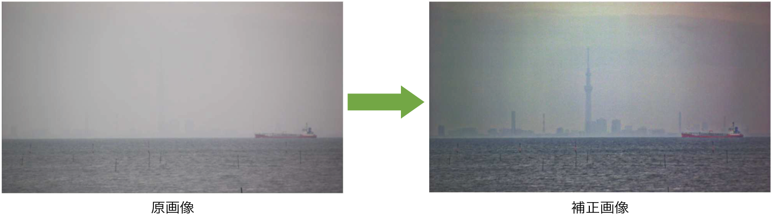 - かすみや霧といった自然現象を、リアルタイムで鮮明化する機能を搭載可能(オプション)