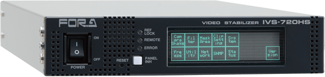 カメラで発生した映像の揺れを電気的に補正するビデオスタビライザー。3G/HD/SD-SDI入出力に対応し、カメラのパン/チルトの動きは維持しブレのみをリアルタイムに補正。高性能画像処理プロセスをハーフ1RUの小型サイズで実現。天気カメラ、報道撮影、番組制作で生じた映像のブレ除去に最適。かすみや霧に対するリアルタイム鮮明化処理も可能(オプション)。