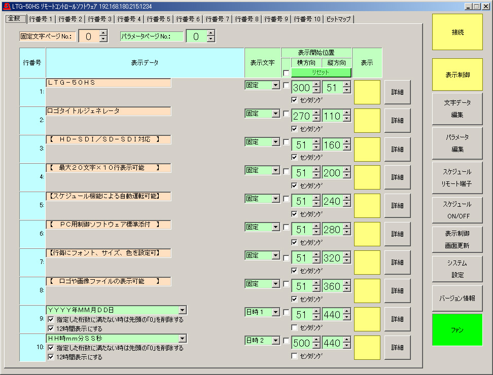 - 透明度: 表示文字の透明度設定が行単位で設定可能