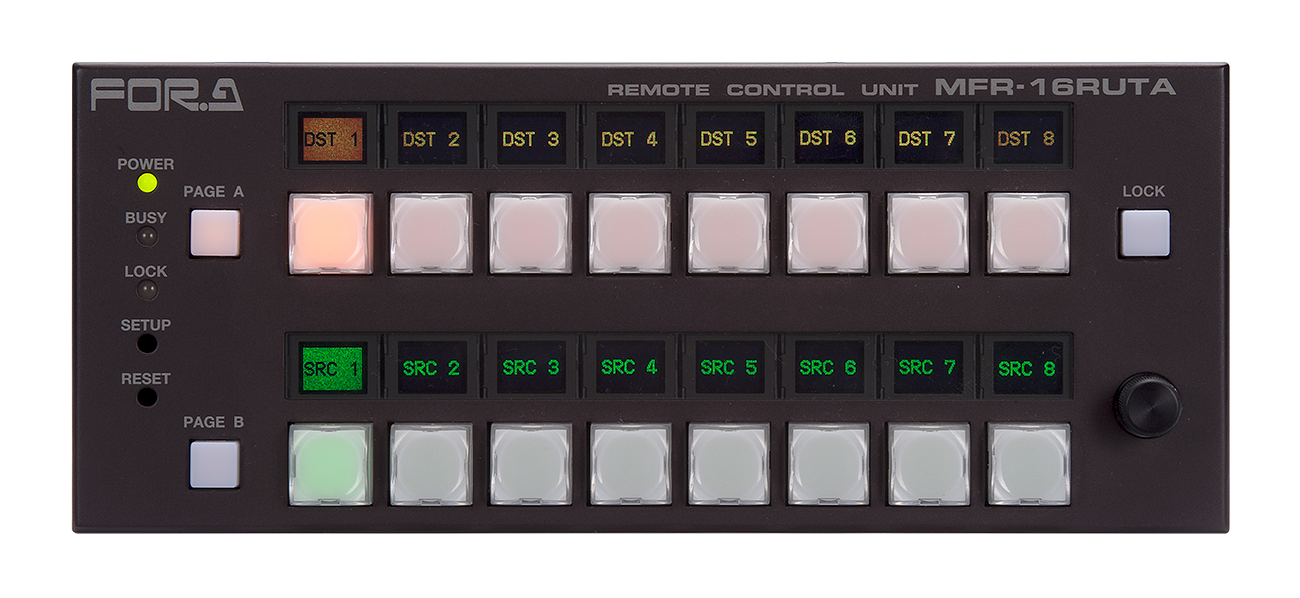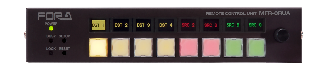 - 各ボタンにはソース名や設定内容が表示可能なOLED表示器を搭載(白/黄/シアン/緑/マゼンタ/赤/青の7色点灯)