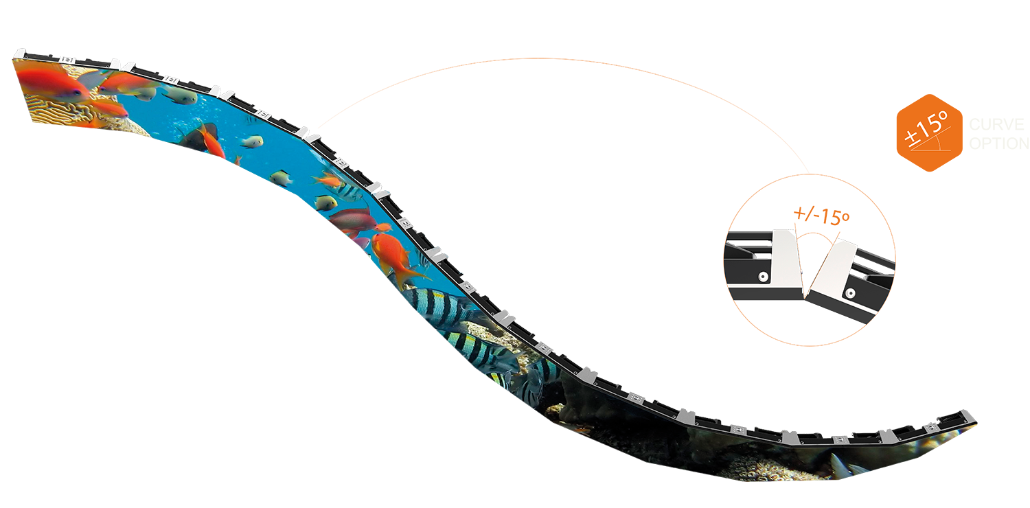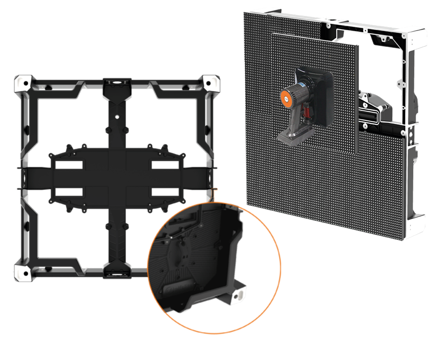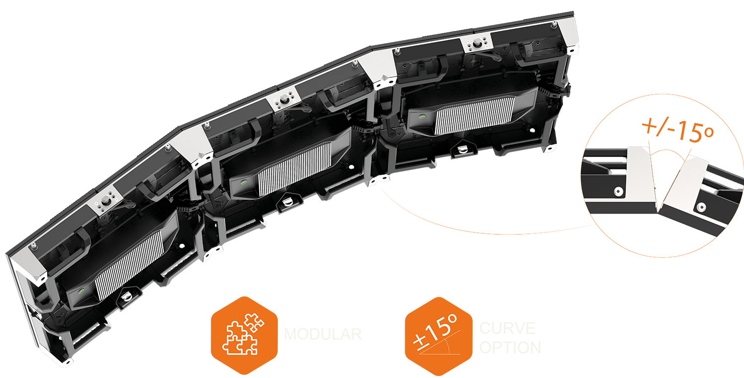 Modularpix Proは、設置の要件に応じて、磁石を使用した前面または背面からのアクセスにも対応可能です。モジュールや電源ユニットは前面から操作できるため、修理も容易です。このLEDシリーズは、ORIM(光学樹脂注入モジュール)技術との統合オプションも提供しています。