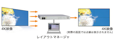 レイアウトマネージャを使って4K映像を簡単に配置し、シームレスに表示可能(入出力共にSQDのみ対応)