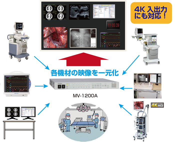 最大16入力・4系統6出力のモニタリングが可能。各種情報の表示や手術の映像など、様々な画像を自由にレイアウト。多彩な機能も搭載した多機能モデル。