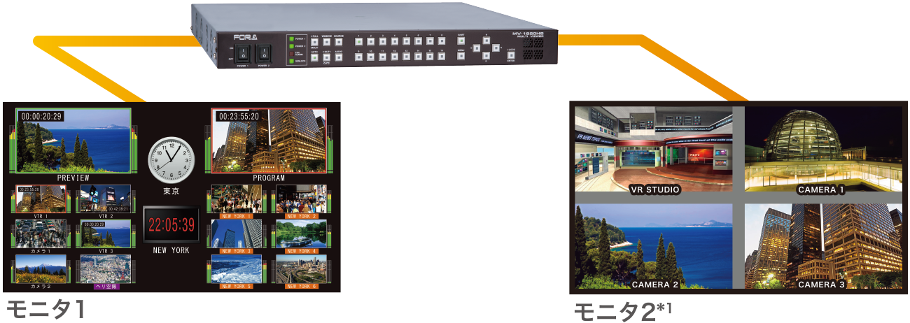 - 2系統あわせて最大20の映像ウィンドウを表示