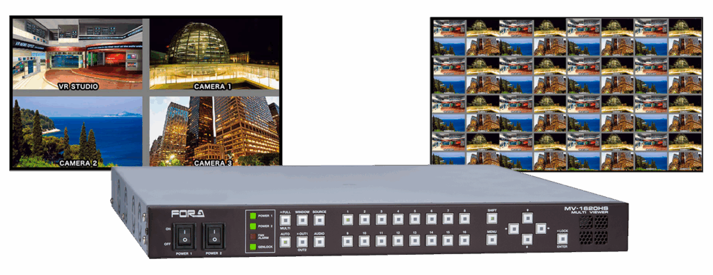 MV-1620HSAは、3G/HD/SD-SDI、アナログコンポジット信号の混在入力に対応したマルチビューワです。1Uのコンパクトなフレームで最大16入力2出力のモニタリングが可能。また、カスケード接続により最大64分割のビデオウィンドウを表示。さらに、自在なレイアウト表示、オーディオレベル表示、AFD対応クロッピング機能、インフォメーションディスプレイ機能などの多彩な機能を搭載しています。