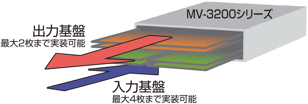 | MV-3200MF | 入力基板を4枚、出力基板を2枚まで実装できる2Uサイズのフレーム |
