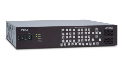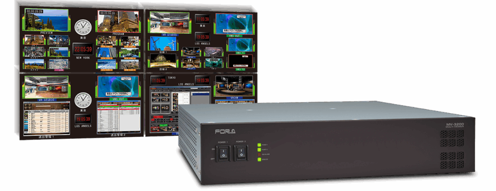 フレームには最大で入力基板を4枚、出力基板を2枚実装することができ、最大32入力4出力の分割表示が可能。3G-SDI (LEVEL-A)、HD-SDI、SD-SDI、アナログコンポジットおよびPC (DVI) 信号の混在入力に対応。