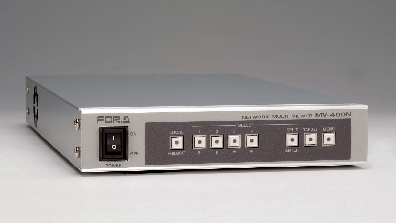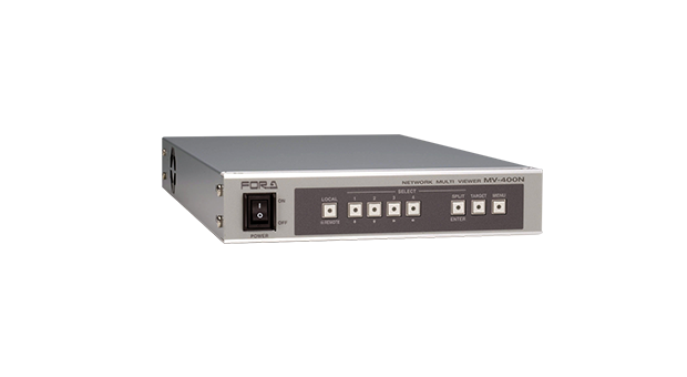 マルチビューワMV-400からのネットワーク転送データを、PCを使用することなく4分割表示可能なネットワークデコーダ。4台までの転送データを1台で受信、最大16分割表示が可能。
