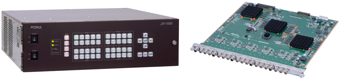 入力オプションカードMV-4200SDI (3G/HD/SD-SDI、アナログコンポジット x 20)、MV-4200PCI (DVI-I/HDMI/RGBHV x 8)、MV-4220SDI (12G/6G-SDIまたは 3G/HD/SD-SDI x 20)、およびインターフェースオプションカードMV-4200IF (GPIO、シリアル制御、アナログオーディオ入力、AESオーディオ入力、GENLOCK入力) の自由な組み合わせが可能