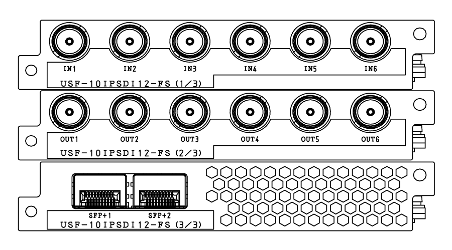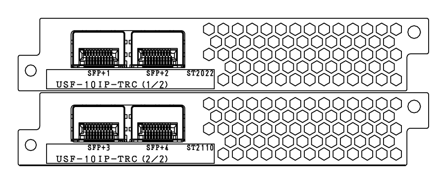 ユニバーサルシステムフレームUSF-212BSに実装可能なVideo over IP対応モジュール。映像、音声信号、アンシラリーデータをIP方式間(SMPTE ST 2022-6/SMPTE ST 2110、SMPTE ST 2022-8/SMPTE ST 2110)やIP/SDI間で変換。USF-10IP-TRC/10IP-TRC-FSは10GbE(SFP+) を4ポート(2系統 x 2)、USF-10IPSDI6-FS/10IPSDI12-FSは2ポート搭載し、Hitless 2重化に対応。