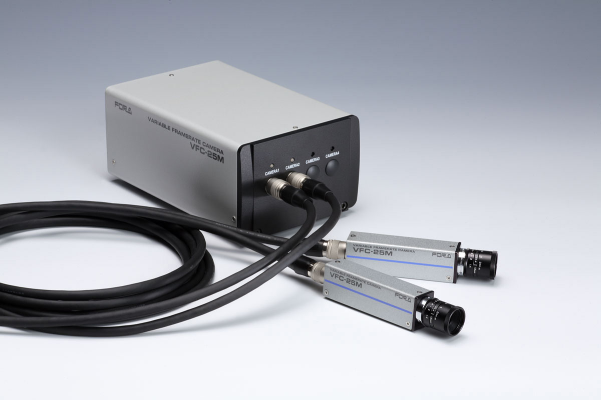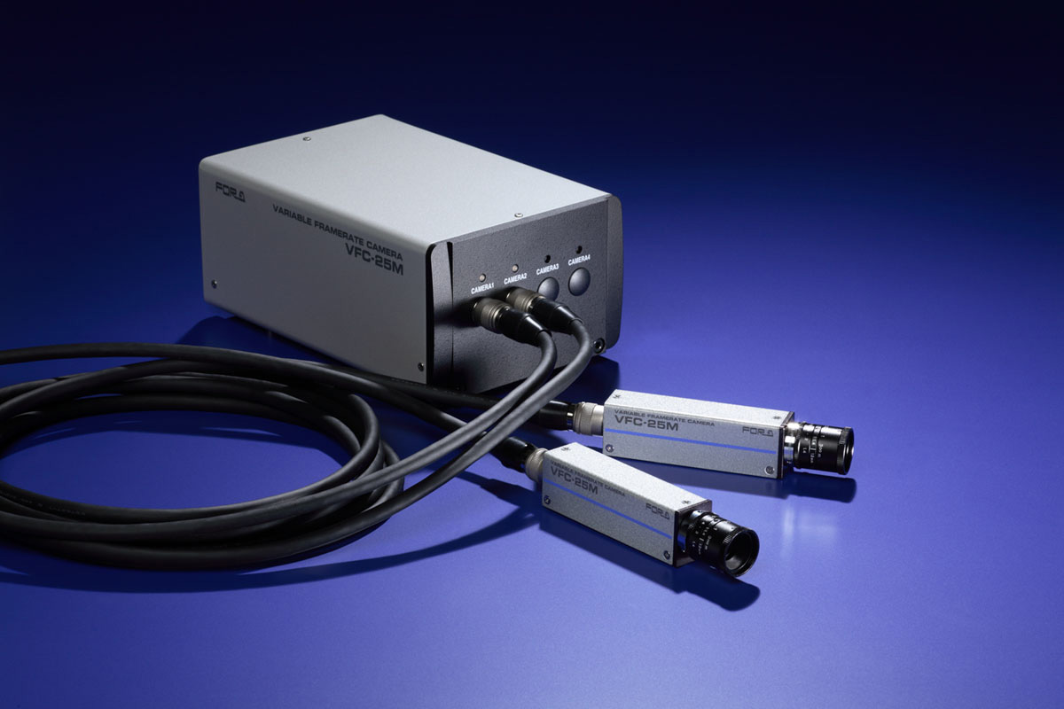 VFC-25Mは機器内部など狭小空間での高速度撮影が可能な小型ヘッド型高速度カメラです。2台の小型カメラヘッドによる2方向からの同期撮影、2分割表示機能による各カメラ映像の同期表示など多彩な機能を搭載。製品開発分野やFAラインでの故障診断、マシンビジョンの不具合解析、医療、スポーツ、バイオメカニクス分野での運動解析など、場所、用途を選ばない高速撮影環境を提供します。