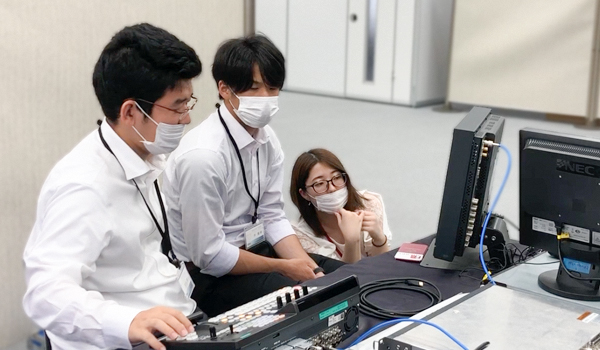 様々な先輩の業務を、その都度指示、説明を受けながら学んでいます。1か月以上にわたって大規模なシステムの立会検査の準備をしたり、実装図から消費電力を算出し、表や系統図を作成したりしています。立会検査とはテレビ局にシステムを納入する前に、大きなスペースに納入するものと同じシステムを組み上げて、発注と差異がないことや不都合、不具合がないか確かめてもらうために行うものです。テレビ局に納入した後に大きな不具合が発生すると放送事故につながる可能性があるので、準備を非常に細かく行っているという印象を受けました。
