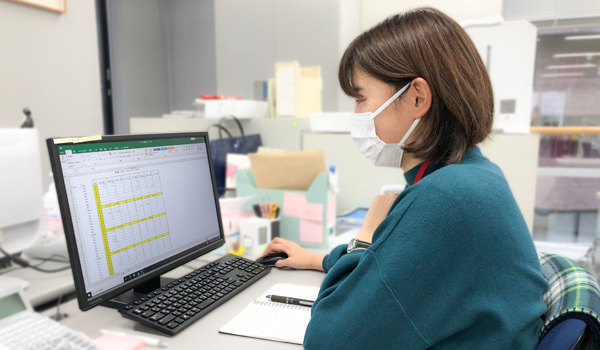 現在は、売上処理など、会社全体の数字について日々の業務のなかで学んでいます。また、社長秘書の業務を兼務している上司の下で働かせていただいているので、社長の業務の簡単なお手伝いも行っています。上司からの「よくできました!」がやりがいになっています。褒めていただけるともっと頑張ろうと思ってしまう、単純な性格なんです。笑
